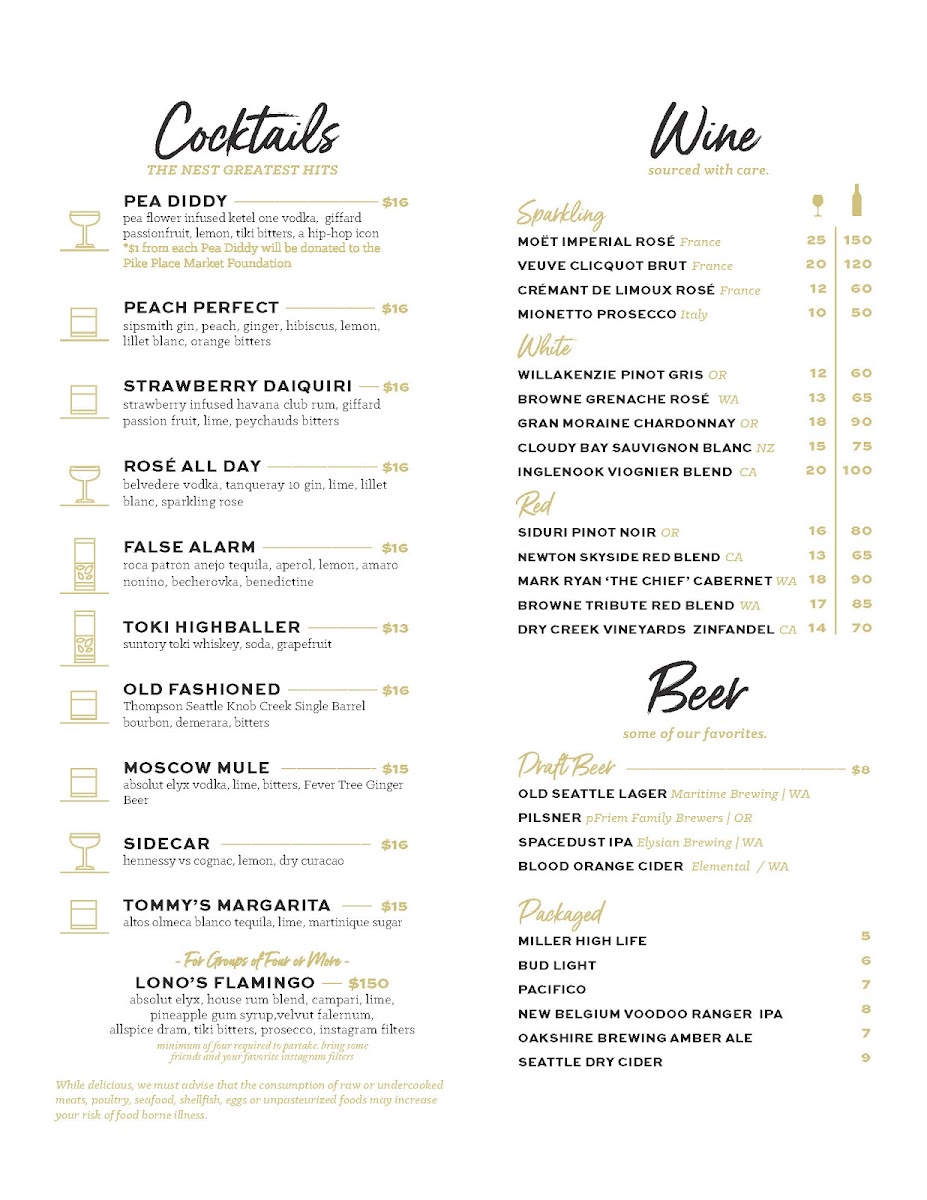 Welcome to The Nest, an intriguing culinary destination nestled in the heart of Seattle at 110 Stewart St. With stunning waterfront views and a vibrant atmosphere, The Nest offers a blend of delightful cocktails and satisfying bar food that cater to both casual diners and nightlife enthusiasts.